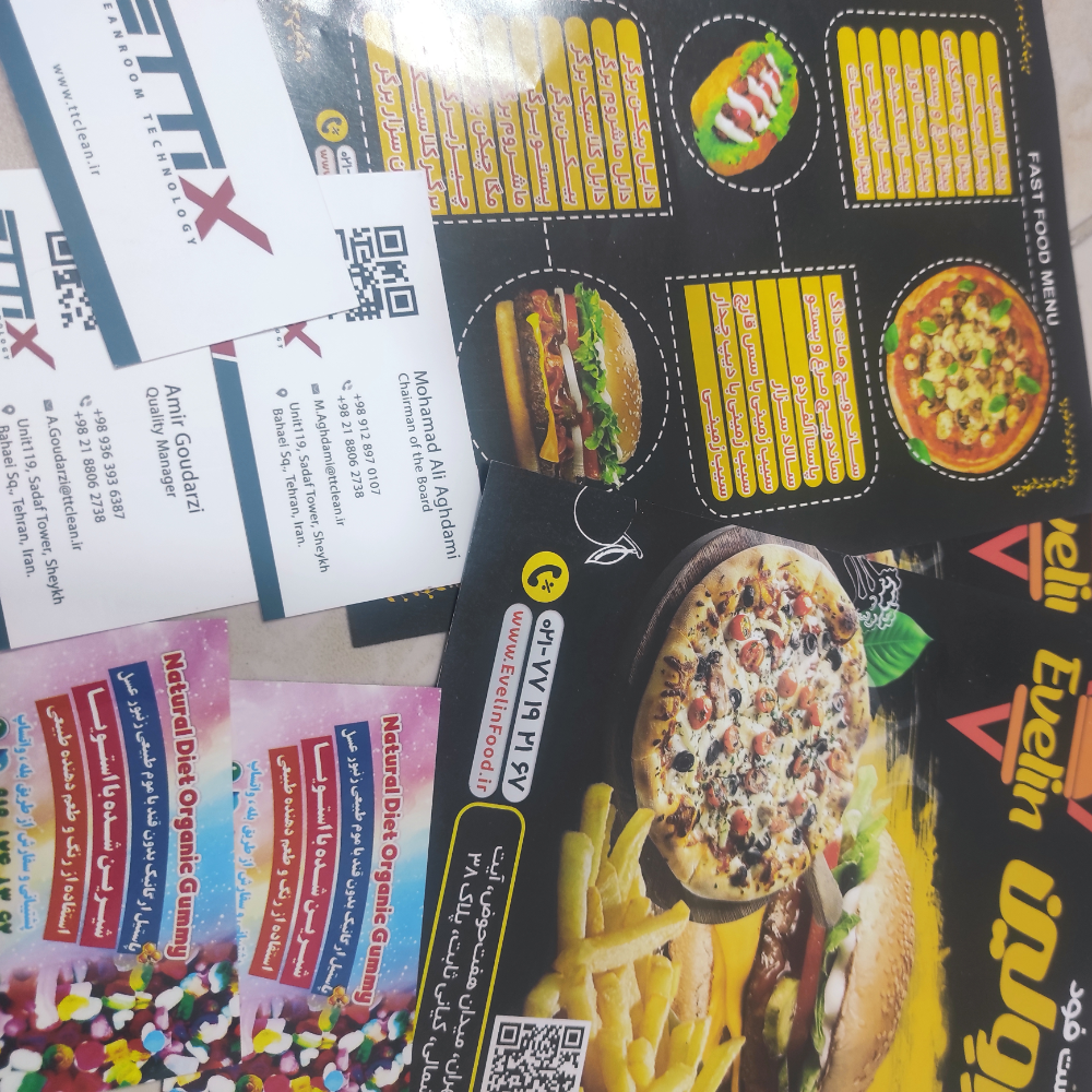 طراحی و چاپ: 🎨 کارت ویزیت فانتزی، قالبدار و آهنربایی 🏷️ لیبل شفاف، دایره و قالبدار 📰 تراکت ریسو، تحریر، گلاسه و کرافت 📄 فاکتور و قبض، بیجک باربری 🚩 پرچمهای ساحلی، رومیزی و تشریفات 📑 سربرگ، پاکت، یادداشت، بروشور و مهر چاپ و نصب: 📌 بنر تبلیغاتی، فکلس و مش 🕊️ بنر تسلیت، بنر مکه و کربلا، خیر مقدم 🎉 بنر ولادت و شهادت 🌐 بنر مناسبهای ملی و جهانی 🏢 نصب تابلوهای کامپوزیت، چنلیوم ،فریم لس، LEDثابت و روان،نئون پلاستیک کارت ویزیت الکترونیکی NFC: 📱اشتراکگذاری اطلاعات شامل صفحات اجتماعی، وبسایت، شماره موبایل و سایر محتوا 🔁بهسادگی قابل بروزرسانی و اشتراکگذاری از طریق QR یا لینک