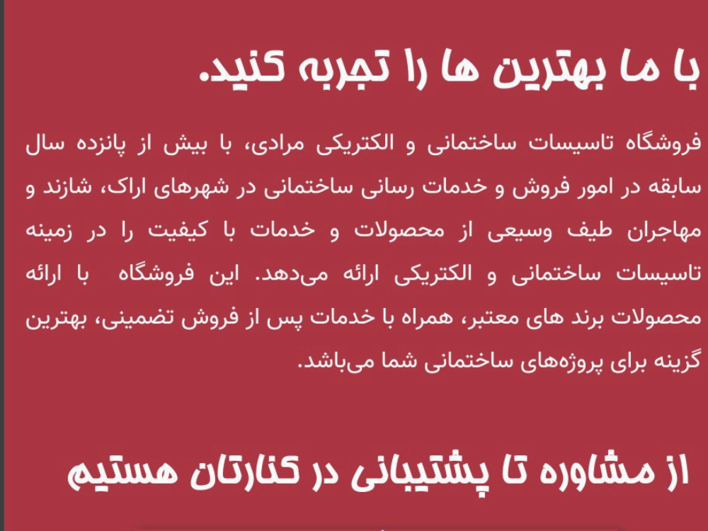 تاسیسات ساختمانی و الکتریکی مرادی افتخار دارد که با بیش از ۱۵ سال سابقه در زمینه های: